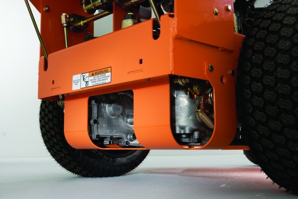 Dual hydraulic ZT-2800 transaxles with cooling fans and steel fan covers allow independent, amazingly smooth and positive power to each wheel. With counter-rotation turning, one wheel moves forward while the other moves backward during a zero-turn, minimizing scuffed turf and increasing maneuverability in heavily landscaped areas.