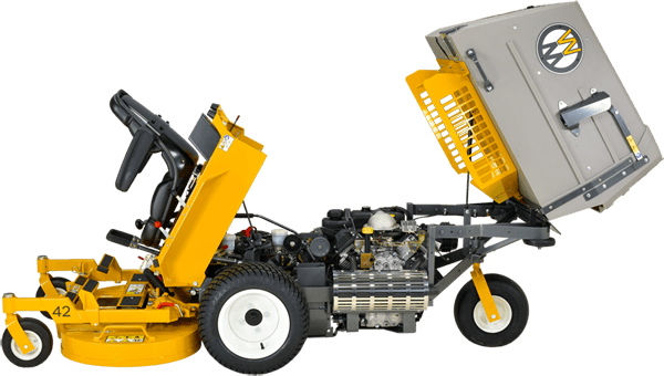 The MC was Walker’s first entry into the commercial market in the mid-90’s. With Kohler power and an efficient design to deliver power to decks of all sizes and types up to 62 inches and a number of implements and attachments. In 2014, the MC was updated to a tilt-open body style making it easier to completely expose the drive train, and it is now standard with a 7-bushel catcher; making it a well-balanced, easy-to-operate machine.